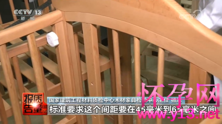 尤其是床的护栏之间,根据标准要求在45-65毫米之间,但一部分婴儿床的间隙过大,容易导致孩子的头、身体卡住。