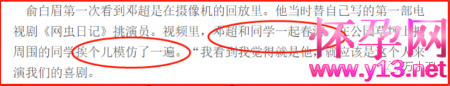 这时,邓超发现有个老师总是与左右两边窃窃私语,心中暗喜,以为他们在表扬自己。